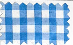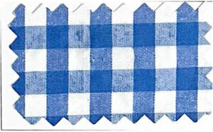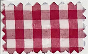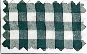 Gingham is made using a plain weave with dyed yarns, usually in two colors (often white + another color). The pattern creates evenly sized checks or squares.