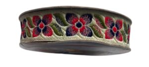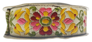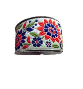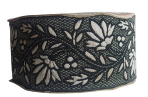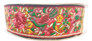 • Intricate silk thread inserted into pattern making by jacquard weaving on narrow fabrics weaving machine. The pattern woven are floral, animal theme, event theme and other varieties to choose from.