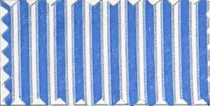 • Evenly spaced stripes, usually in white + bright color